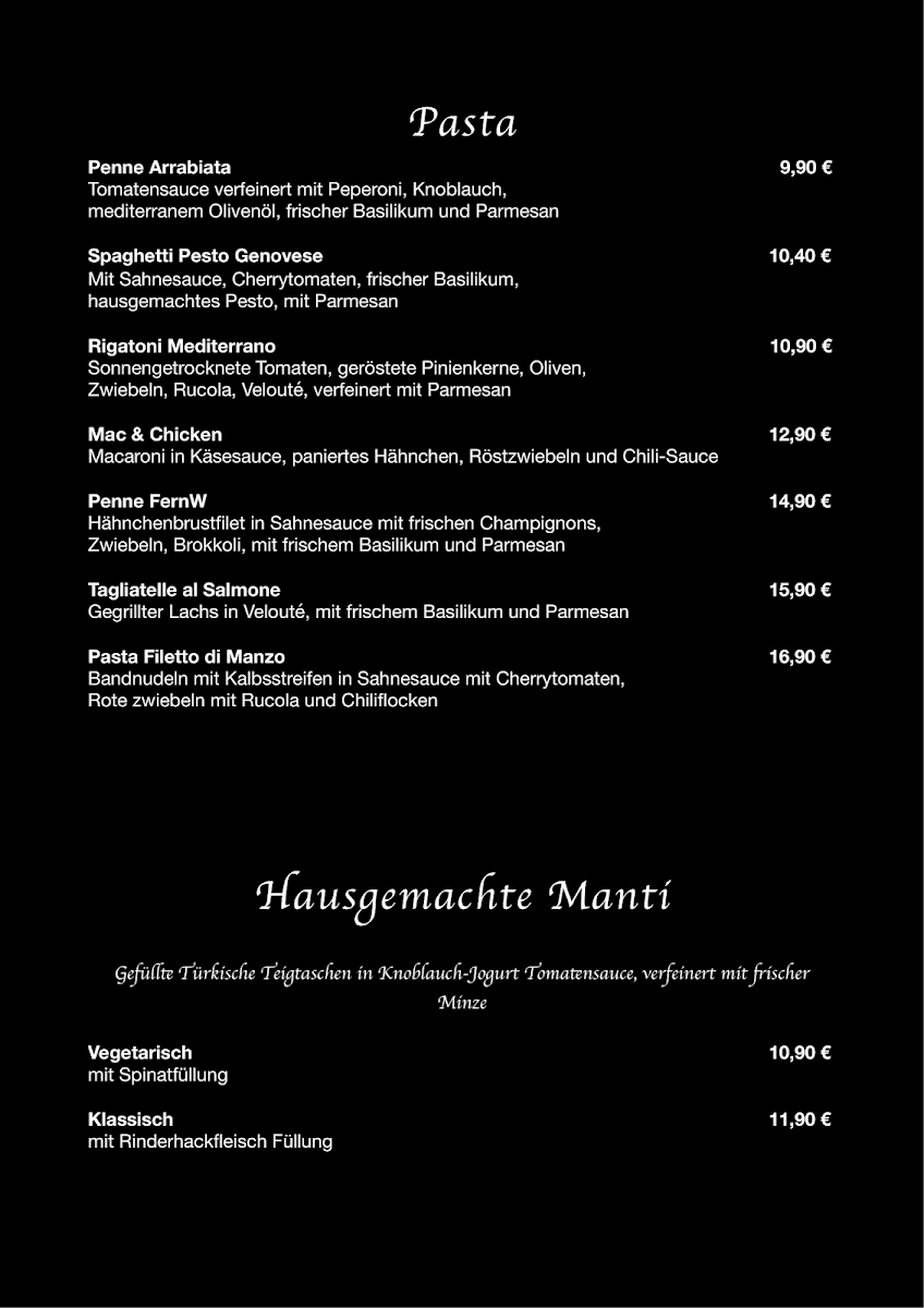The menu is a vibrant tapestry of flavors, featuring standout dishes like tender meat strips in a creamy mushroom sauce served with pesto-infused penne and a refreshing side salad. Diners rave about the perfectly al dente pasta and the aromatic pesto that elevate the dining experience. The selection also includes enticing desserts and a variety of drinks, like the refreshing lime-mint lemonade, making it an excellent choice for all.